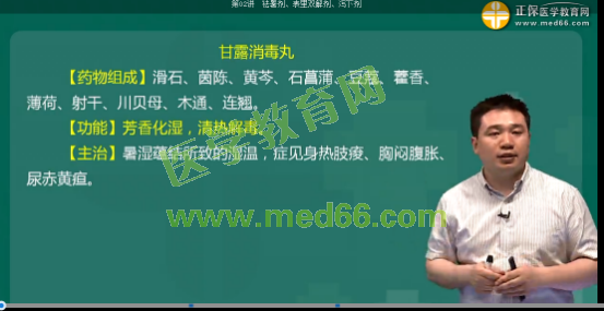 考點(diǎn)26、某男,35歲。體胖,長夏溽暑突患熱病,癥見身熱肢酸、胸悶腹脹、尿赤黃疸、舌紅苔黃膩。治當(dāng)芳香化濕,清熱解毒,宜選用的成藥是甘露消毒丸。