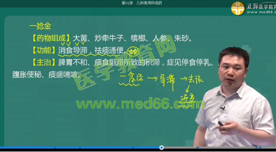 考點(diǎn)28、某男,1歲半,患消化不良,癥見停食停乳。醫(yī)師處以一捻金,此因該成藥的功能是消食導(dǎo)滯、祛痰通便。