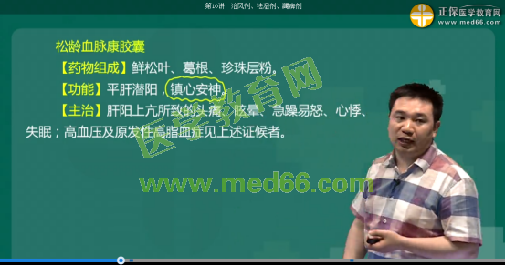 考點(diǎn)29、某男、65歲,患高血壓及原發(fā)性高脂血癥,癥見頭痛,眩暈,急躁易怒,心悸,失眠。證屬肝陽上亢,宜選用的成藥是松齡血脈康膠囊。