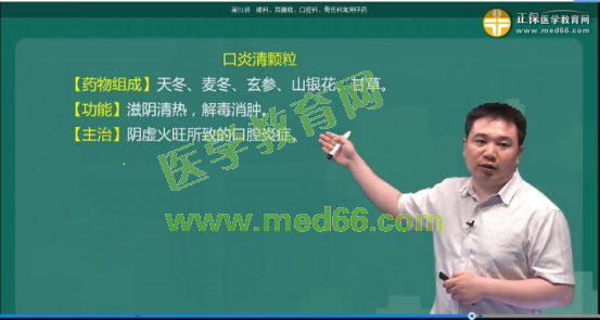 考點(diǎn)53、冰硼散的功能是清熱解毒,消腫止痛;口炎清顆粒的功能是滋陰清熱,解毒消腫。