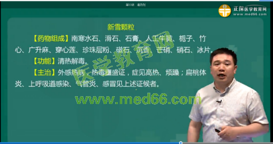 考點(diǎn)55、某男,58歲。平日喜飲酒食辛辣。近日身熱煩躁、目赤口瘡、牙齦腫痛、大便秘結(jié)、痔血。宜選用的成藥是一清顆粒;某女25歲。素體強(qiáng)壯。六月中突患上呼吸道感染,癥見高熱、煩躁。醫(yī)師診斷為外感熱病、熱毒壅盛證。宜選用的成藥是新雪顆粒。