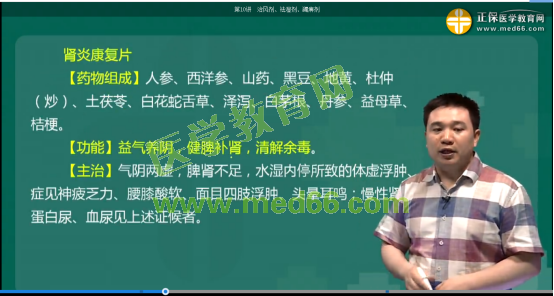 考點(diǎn)66、某男,56歲。1年前被確診為腎結(jié)石、慢性腎炎前列腺增生癥。刻下血尿1天伴腰腹疼痛、排尿不暢。經(jīng)碎石治療后,為鞏固療效,又請中醫(yī)治因工作繁忙無暇煎藥,要求服用中成藥。醫(yī)師遂處以排石顆粒,以善其后。3個月后,患者又請中醫(yī)診治。訴云連服排石顆粒月余經(jīng)復(fù)查腎結(jié)石已基本消除。問診得知,近日尿中蛋白增加、少量血尿并伴有神疲乏力,腰膝酸軟,面目四肢浮腫,頭暈耳鳴等。證屬氣陰兩虛、脾腎不足、水濕內(nèi)停所致的體虛浮腫,宜選用的成藥是腎炎康復(fù)片。
