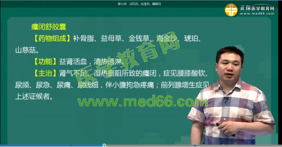 考點(diǎn)67、某男,56歲。1年前被確診為腎結(jié)石、慢性腎炎前列腺增生癥??滔卵?天伴腰腹疼痛、排尿不暢。經(jīng)碎石治療后,為鞏固療效,又請中醫(yī)治因工作繁忙無暇煎藥,要求服用中成藥。醫(yī)師遂處以排石顆粒,以善其后。1年后患者再請中醫(yī)診治。訴云服用上藥2月血尿已止尿蛋白也減輕余癥均得以緩解唯時有腰膝酸軟、足踝腫;之后,遂停藥:近日因老朋友聚會小酌幾杯,又見尿頻、尿急、尿痛、尿線細(xì),并伴小腹拘急疼痛。證屬腎氣不足、濕熱瘀阻,宣選用的成藥是癃閉舒膠囊。
