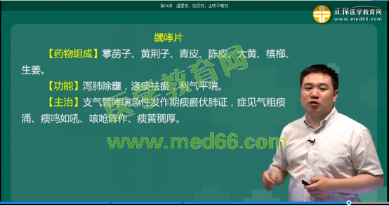 考點(diǎn)70、某男,60歲,5年前被確診為支氣管哮喘,多在夜間發(fā)作。發(fā)作時頓感胸部賬悶呼吸用難(呼氣延長)并作有哮鳴音,干咳和紫紺。為減輕氣喘,常被迫坐起經(jīng)西醫(yī)治療癥情緩解為進(jìn)一步緩解病情遂請中醫(yī)診治。因煎藥不便希望服用中成藥。上藥服用7天病情穩(wěn)定癥狀又有所緩解。據(jù)此醫(yī)師囑其繼續(xù)服用該成藥1月后,患者復(fù)來就診。訴云因前日嗜食辛辣與感受風(fēng)寒病情突然加重當(dāng)下氣粗痰涌預(yù)鳴如吼、咳嗆陣作、痰黃稠厚兼大便秘結(jié)、紫紺。病屬支氣管哮喘發(fā)作期痰瘀伏肺證,宜選用的成藥是蠲哮片。