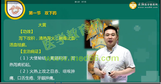 考點(diǎn)76、大黃性味苦性微寒,沉降下行,即入脾胃大腸經(jīng),又入心肝血分,依據(jù)其性能特點(diǎn)可知其功效為:瀉下攻積,清熱瀉火,解毒止血,活血祛瘀。
