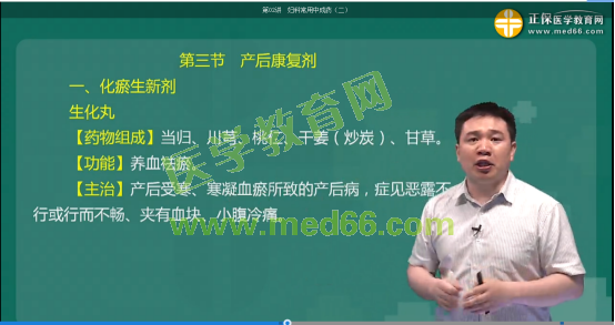 考點(diǎn)79、生化丸為治療產(chǎn)后病的常用藥,藥物組成為:當(dāng)歸,川芎,桃仁,甘草,干姜炭。