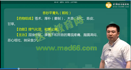 考點(diǎn)81、某女,21歲,因濕注中阻致脾胃不和,癥見胃脘疼痛,胸膈滿悶、惡心、嘔吐,納呆食少,經(jīng)服用香砂平胃丸收效,是因此成藥的功能有理氣,化濕,和胃,止痛。