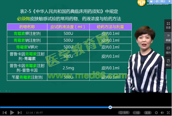 考點(diǎn)3. 患者,男,16歲,因急性細(xì)菌性扁桃體炎使用青霉素鈉治療,用藥前進(jìn)行青霉素皮試。關(guān)于青霉素皮試液濃度和給藥方法:醫(yī)學(xué)教育網(wǎng)搜集整理濃度500U/ml,皮內(nèi)注射0.1ml.