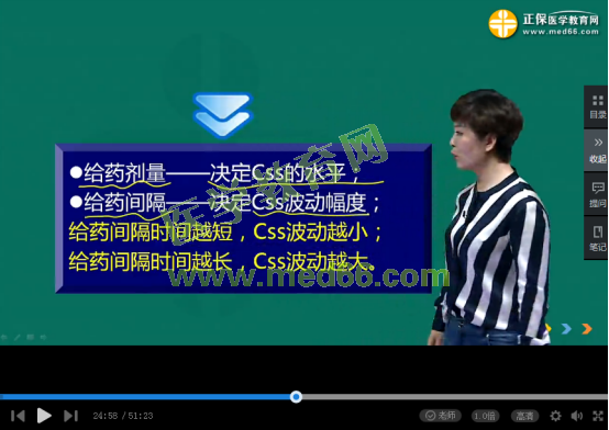 考點(diǎn)5. 對(duì)半衰期短的藥物,為了減少血藥濃度波動(dòng),可采取的方法是縮短給藥間隔的同時(shí)減少單劑量。