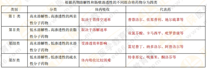 1、根據(jù)藥物溶解性和腸壁滲透性的不同組合將藥物分為四類