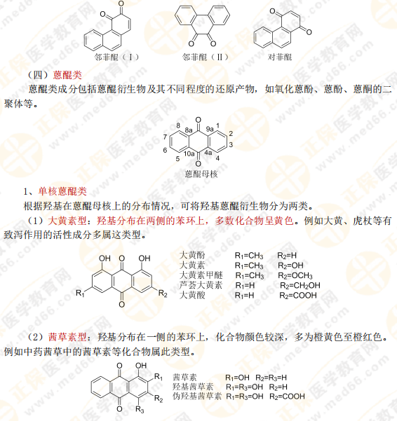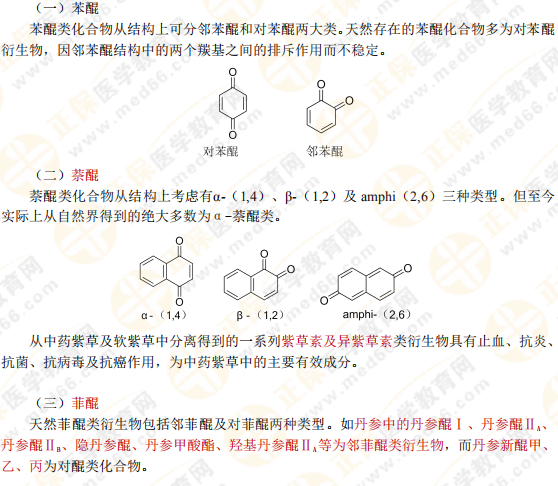 醌類化合物指分子內(nèi)具有不飽和環(huán)二酮結(jié)構(gòu)(醌式結(jié)構(gòu))或容易轉(zhuǎn)變成這樣結(jié)構(gòu)的天然有機(jī)化合物。天然醌類化合物主要分為苯醌、萘醌、菲醌和蒽醌四種類型。