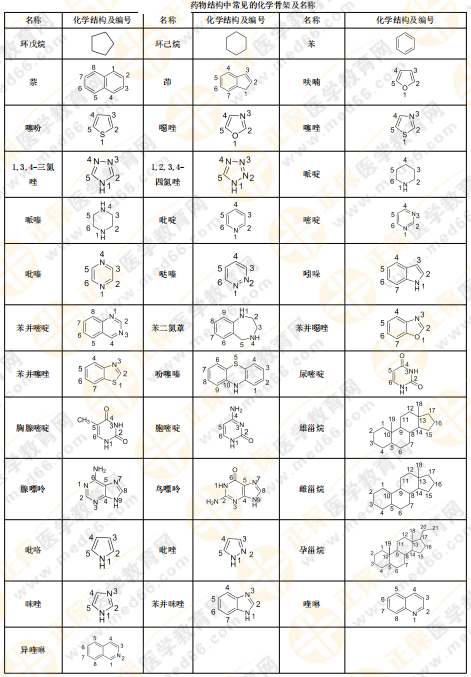 2、藥物結(jié)構(gòu)中常見的化學(xué)骨架及名稱