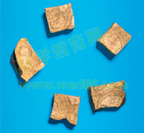 呈團(tuán)塊狀或不規(guī)則紡錘形。表面紅棕色或紅褐色,皺縮不平,有淺溝,并有橫長皮孔樣突起及細(xì)根痕。體重,質(zhì)堅(jiān)實(shí),不易折斷,切斷面淺黃棕色或淺紅棕色,顯粉性,皮部有4~11個(gè)類圓形異型維管束環(huán)列,形成云錦狀花紋,中央木部較大,有的呈木心。