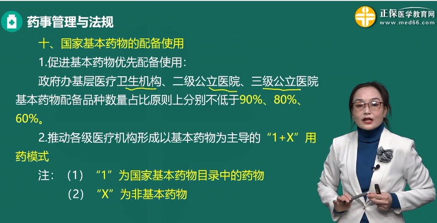 政府辦基層醫(yī)療衛(wèi)生機構、二級公立醫(yī)院、三級公立醫(yī)院基本藥物配備品種數量占比原則上分別不低90%、80%、60%