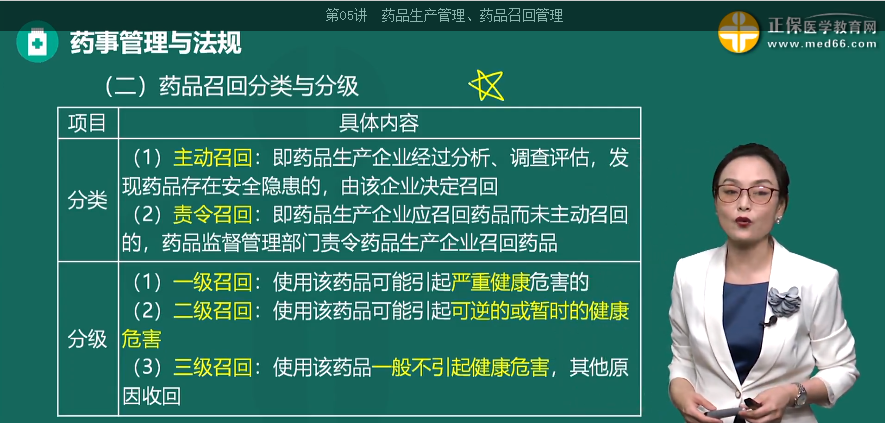 藥品召回分級:一級召回:可能引起嚴重健康危害;二級召回:可能引起暫時的或者可逆的健康危害;三級召回:一般不會引起健康危害。