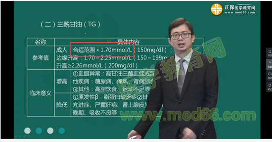 某男,35歲。 形體肥胖,嗜食肥甘,口中黏膩,來(lái)院進(jìn)行血糖、血脂等相關(guān)檢查。檢查結(jié)果:FBG5.6 mmol/L TC5.16mmol/L,TG2.45mmol/L,HDL-C1.4mmol/L,LDL-C2027mmol/L。其中,指標(biāo)異常的是(B)