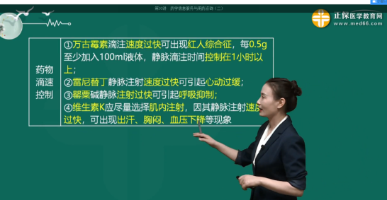 萬古霉素不宜肌內(nèi)注射或直接靜脈注射,因滴注速度過快可致由組胺引起的非免疫性劑量相關(guān)反應(yīng)(即“紅人綜合征”),故滴注速度必須嚴格控制。