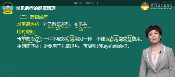常用于退熱的有對乙酰氨基酚和布洛芬,原則上單藥治療,如果一種藥物不起效則換用另外一種,不建議合用或交替使用。如果一種藥物服用后最小時間間隔還沒到,患者又發(fā)熱,可以用另外一種藥物。