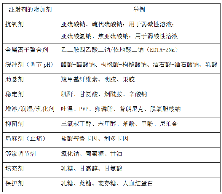 注射劑常見的附加劑如下: