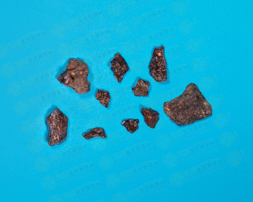 藥材呈方形或不規(guī)則塊狀,大小不一。表面棕褐色或黑褐色,光滑而稍具光澤。質(zhì)硬,易碎,斷面不整齊,具光澤,有細(xì)孔,遇潮有黏性。氣微,味澀、苦,略回甜。取火柴桿浸于本品水浸液中,使輕微著色,待干燥后,再浸入鹽酸中立即取出,置火焰附近烘烤,桿上即顯深紅色。