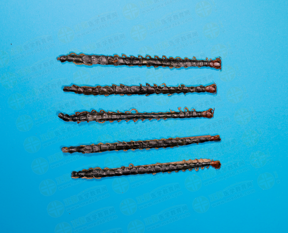【來(lái)源】為節(jié)肢動(dòng)物門多足綱蜈蚣科動(dòng)物少棘巨蜈蚣的干燥體。