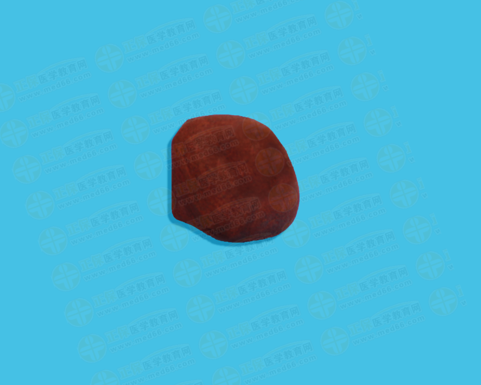 藥材略呈類圓四方形或方磚形,表面暗紅色,有光澤,附有因摩擦而成的紅粉。質(zhì)硬而脆,破碎面紅色。研粉為磚紅色。氣微、味淡。在水中不溶,在熱水中軟化。