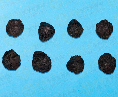藥材呈類球形或扁球形,直徑1.5~3cm。表面烏黑色或棕黑色,皺縮不平,基部有圓形果梗痕。果核堅硬,橢圓形,棕黃色,表面有凹點;種子扁卵形,淡黃色。氣微,味極酸。