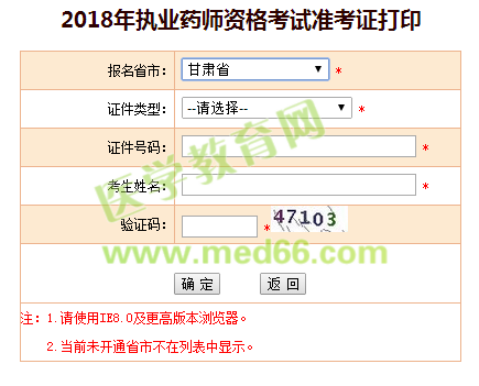 2018年甘肅省執(zhí)業(yè)藥師準(zhǔn)考證打印入口: