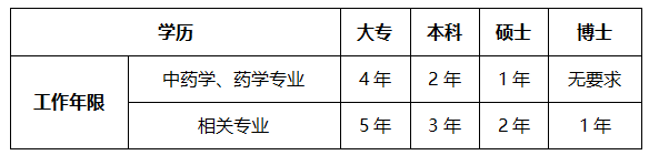 1、取得藥學(xué)類、中藥學(xué)類專業(yè)大專學(xué)歷,在藥學(xué)或中藥學(xué)崗位工作滿4年。