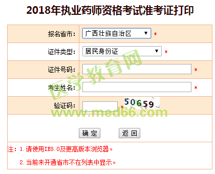 2018年廣西執(zhí)業(yè)藥師準(zhǔn)考證打印入口: