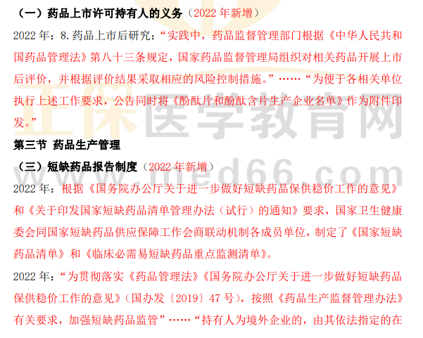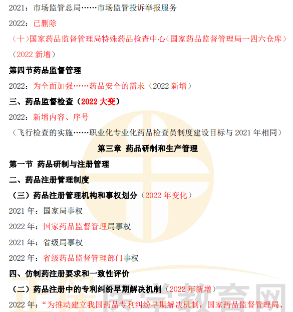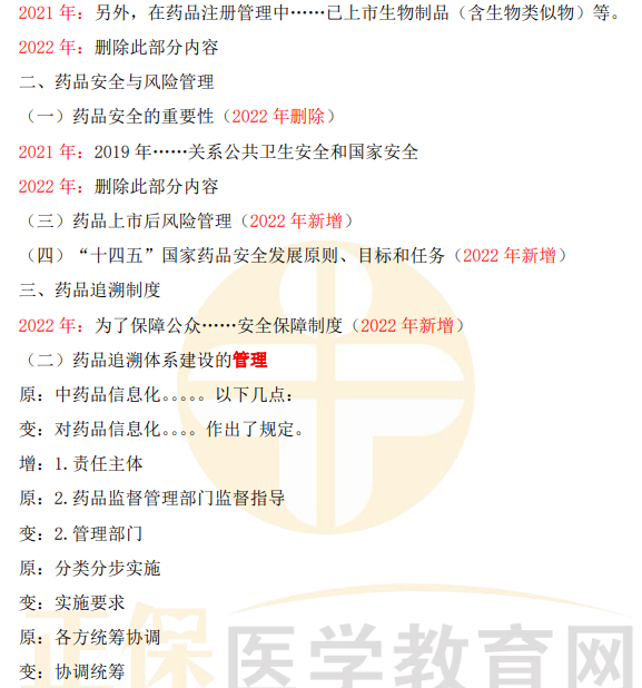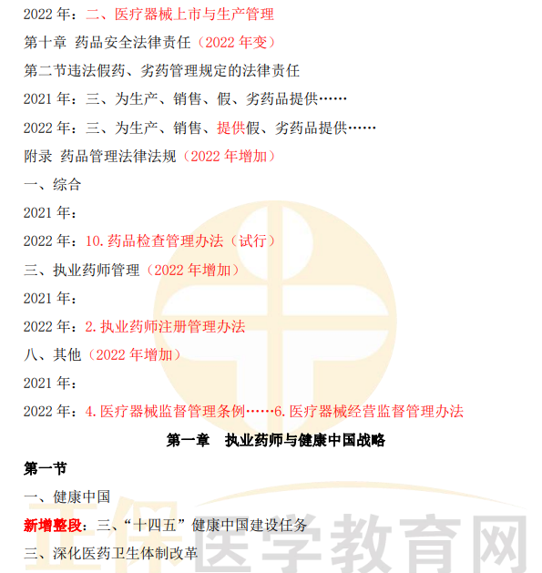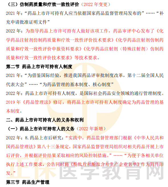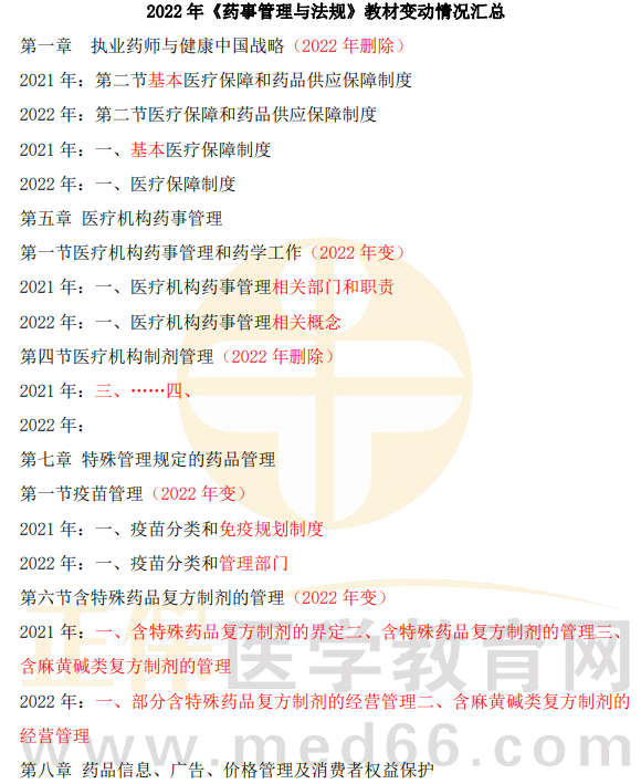 2022年執(zhí)業(yè)藥師《藥事管理與法規(guī)》教材變動(dòng)匯總來了!相較于2021年,教材有哪些變動(dòng)?醫(yī)學(xué)教育網(wǎng)小編為大家做了如下梳理~