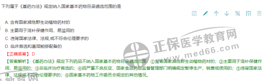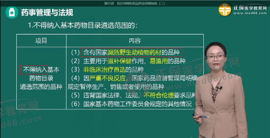 2.考試涉及“國家基本藥物目錄遴選管理”,老師講解中有涉及,具體考題及視頻截圖如下: