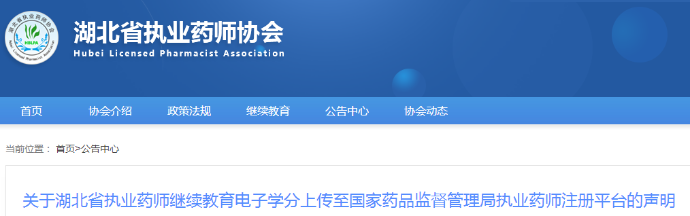 官方:湖北省執(zhí)業(yè)藥師繼續(xù)教育電子學分上傳至國家藥品監(jiān)督管理局執(zhí)業(yè)藥師注冊平臺