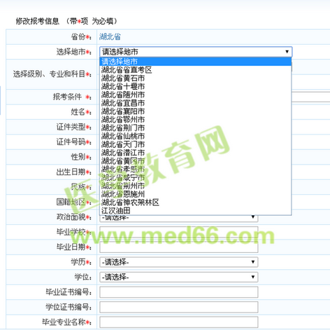 醫(yī)學教育網(wǎng)獲悉,湖北省2016年執(zhí)業(yè)藥師考試報名入口已于7 月22日正式開通,請廣大湖北執(zhí)業(yè)藥師考生抓緊時間報名參加考試,為幫助廣大考生考生報名參加考試,醫(yī)學教育網(wǎng)同步開通了報名入口,請廣大考生抓緊時間報名參加考試,溫馨提示,下拉框中出現(xiàn)的城市都是可以報名參加考試的,請考生在報名的時候認真填寫報名表,不要填寫錯誤。