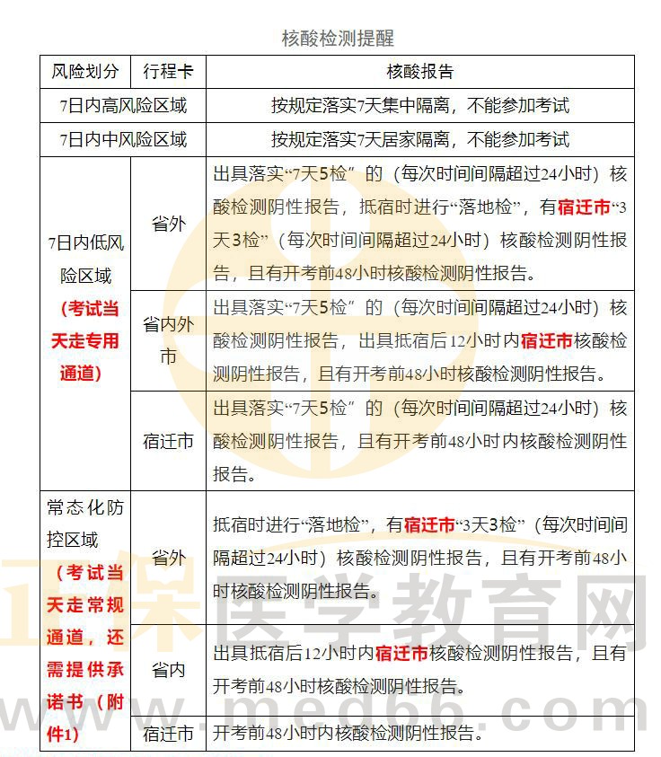 以上就是小編為大家整理的“江蘇省宿遷市2022年11月5日、6日考試疫情防控提醒”的相關(guān)內(nèi)容,希望對(duì)廣大執(zhí)業(yè)藥師考生有幫助!更多相關(guān)資訊請(qǐng)關(guān)注醫(yī)學(xué)教育網(wǎng)!