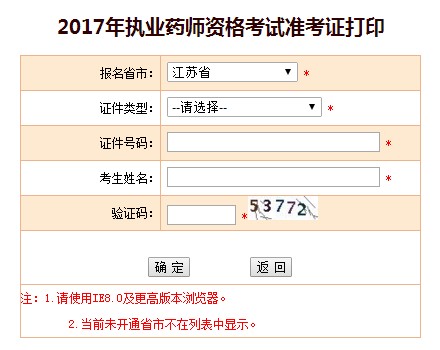 江蘇省2017年執(zhí)業(yè)藥師準(zhǔn)考證打印入口已開通: