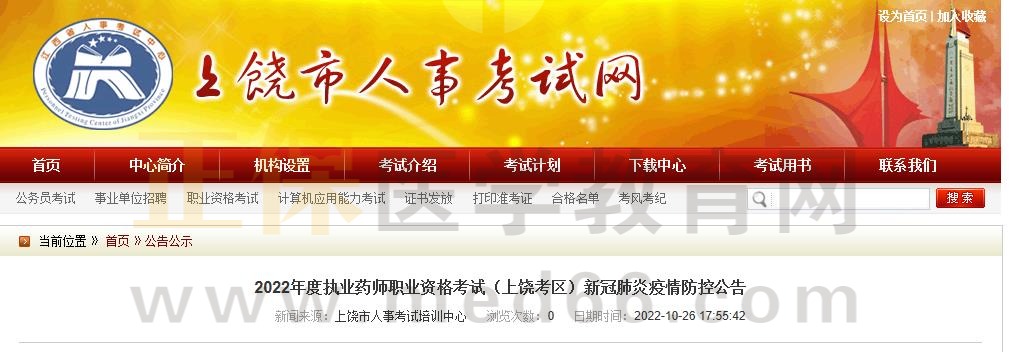 江西2022年度執(zhí)業(yè)藥師職業(yè)資格考試(上饒考區(qū))新冠肺炎疫情防控公告