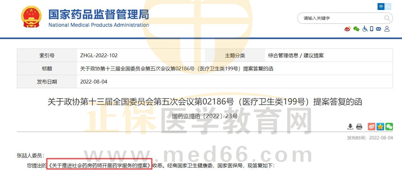 2022年8月4日,國家藥監(jiān)局明確表態(tài):國家藥監(jiān)局將進(jìn)一步加強(qiáng)工作調(diào)研,及時(shí)總結(jié)地方的實(shí)踐經(jīng)驗(yàn),探索制定并適時(shí)出臺(tái)社會(huì)藥店開展藥學(xué)服務(wù)的實(shí)施規(guī)范,同主管部門探討醫(yī)保支付藥店藥品調(diào)劑費(fèi)、藥學(xué)服務(wù)費(fèi)等工作,同時(shí)積極推動(dòng)執(zhí)業(yè)藥師回歸藥學(xué)服務(wù)本職,為人民提供高質(zhì)量的藥學(xué)服務(wù)。