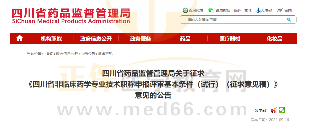 好消息!2022年9月16日,四川省藥品監(jiān)督管理局發(fā)布了關(guān)于征求《四川省非臨床藥學(xué)專業(yè)技術(shù)職稱申報(bào)評(píng)審基本條件(試行)(征求意見稿)》意見的公告,并公布了申報(bào)明細(xì):執(zhí)業(yè)藥師可認(rèn)定為主管藥師,還可申報(bào)副主任藥師!一起來(lái)看看詳情吧!