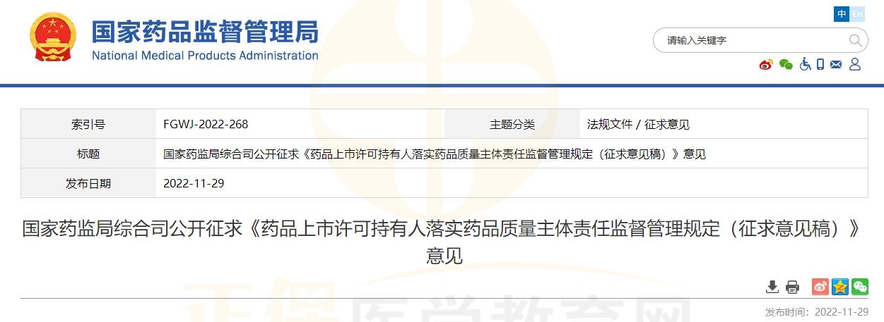 文章于《藥品上市許可持有人落實(shí)藥品質(zhì)量主體責(zé)任監(jiān)督管理規(guī)定(征求意見(jiàn)稿)》中提到:
