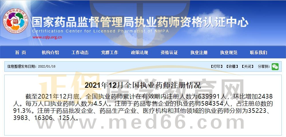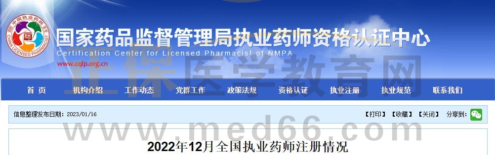 近期,國家藥品監(jiān)督管理局執(zhí)業(yè)藥師資格認證中心發(fā)布了《2022年12月全國執(zhí)業(yè)藥師注冊情況》,具體通知內(nèi)容如下: