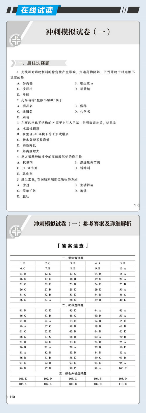 以上分享的“2023年執(zhí)業(yè)藥師《模擬試卷-藥一》免費(fèi)試讀(5折搶購(gòu)現(xiàn)貨)”內(nèi)容,由醫(yī)學(xué)教育網(wǎng)小編搜集整理,如果您覺(jué)得對(duì)您有所幫助,可以分享給朋友。想了解更多執(zhí)業(yè)藥師考試信息、復(fù)習(xí)資料、備考干貨請(qǐng)關(guān)注醫(yī)學(xué)教育網(wǎng)。