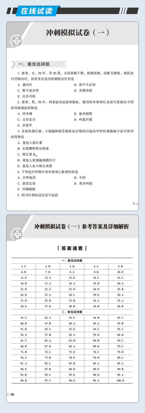 以上分享的“2023年執(zhí)業(yè)藥師《模擬試卷-藥二》免費(fèi)試讀(5折搶購(gòu)現(xiàn)貨)”內(nèi)容,由醫(yī)學(xué)教育網(wǎng)小編搜集整理,如果您覺得對(duì)您有所幫助,可以分享給朋友。想了解更多執(zhí)業(yè)藥師考試信息、復(fù)習(xí)資料、備考干貨請(qǐng)關(guān)注醫(yī)學(xué)教育網(wǎng)。