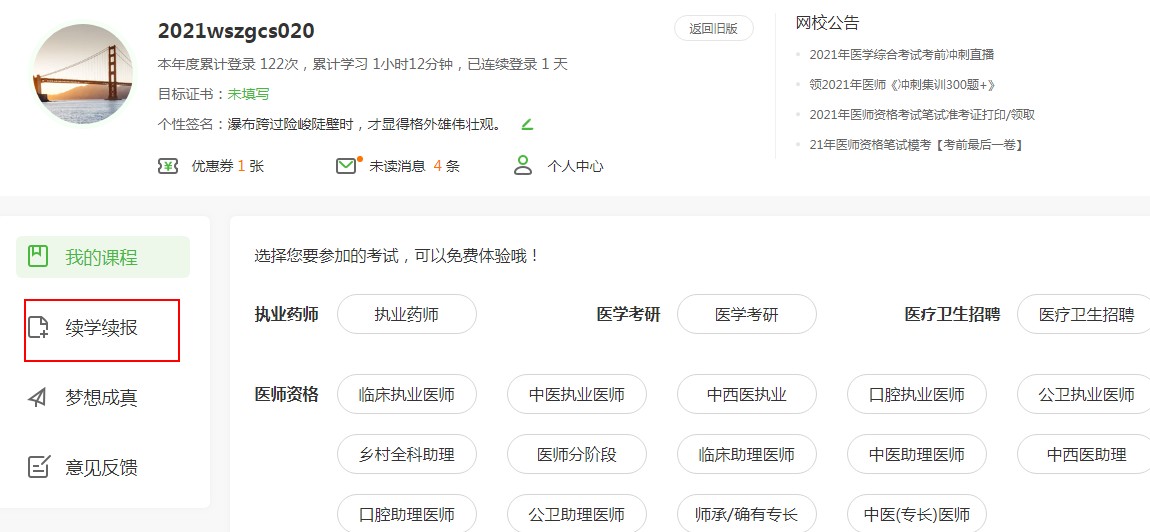 各位2022年執(zhí)業(yè)藥師(補(bǔ)考)考生請注意!2022年執(zhí)業(yè)藥師(補(bǔ)考)無憂實(shí)驗(yàn)班、高效定制班、VIP簽約特訓(xùn)營A班、VIP簽約特訓(xùn)營A班(續(xù)學(xué))、VIP簽約特訓(xùn)營B班返款/續(xù)學(xué)入口已開通了!購買以上班次且在2023年3月份執(zhí)業(yè)藥師(補(bǔ)考)中未通過的學(xué)員,可及時申請返款/續(xù)學(xué),具體操作方法如下: