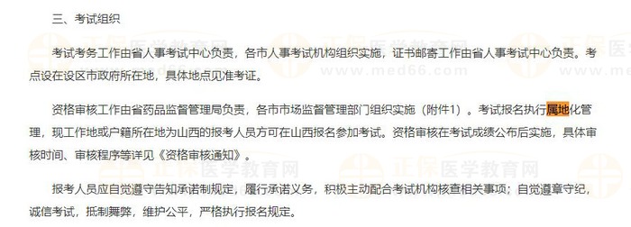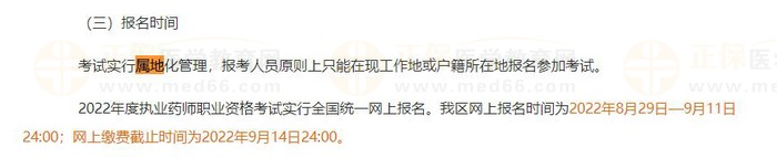 在執(zhí)業(yè)藥師報(bào)名考務(wù)通知公告中,一般都會(huì)提到各地在考試組織實(shí)施過程中要加強(qiáng)報(bào)考人員屬地化管理,報(bào)考人員原則上只能在現(xiàn)工作地或戶籍所在地報(bào)名參加考試。