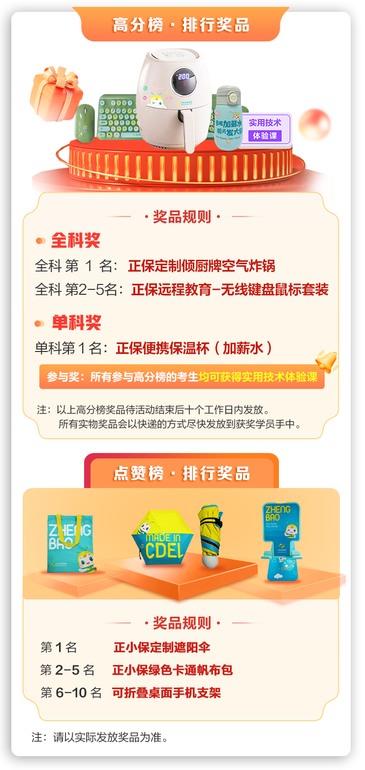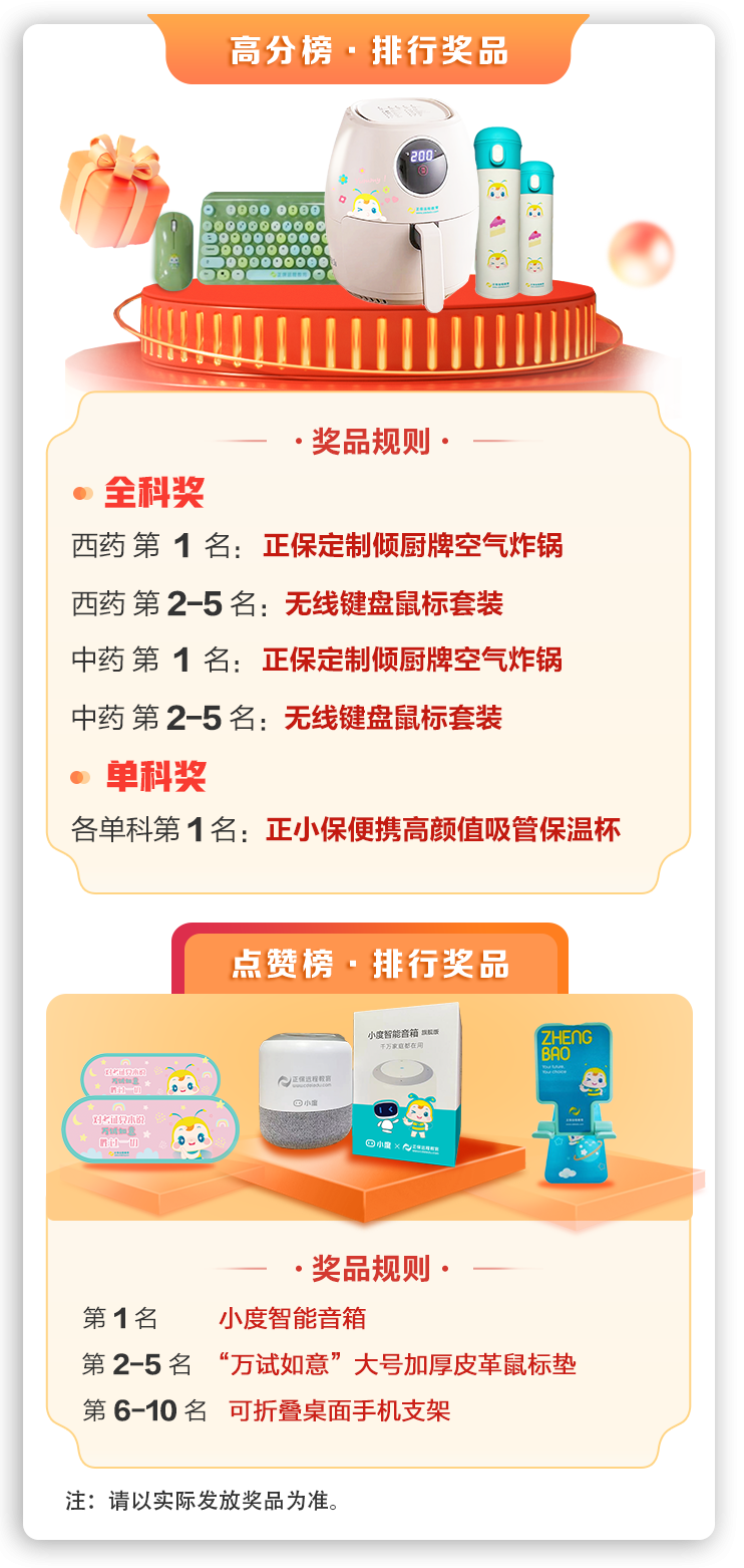 自2023年5月26日,2022年執(zhí)業(yè)藥師(補(bǔ)考)成績(jī)發(fā)布后,醫(yī)學(xué)教育網(wǎng)舉辦了【曬分有禮】活動(dòng)為大家更添喜氣,很多學(xué)員參與其中,更是有一大票優(yōu)秀的學(xué)員考出了優(yōu)異的成績(jī),也有很多學(xué)員的評(píng)論獲得了很多人的支持與鼓勵(lì)!經(jīng)過一番battle,我們【曬分有禮】活動(dòng)獲獎(jiǎng)名單最終得以確認(rèn)!我們按照成績(jī)的高低及時(shí)間先后,點(diǎn)贊量的多少及時(shí)間先后,分別選出了執(zhí)業(yè)藥師高分榜與點(diǎn)贊榜的獲獎(jiǎng)學(xué)員!恭喜各位,網(wǎng)校精心準(zhǔn)備了精美禮品送給大家,快來看看吧~
