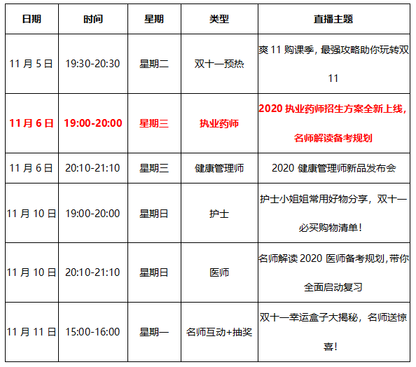 1、11月5日-11日期間有多場免費直播課,如下安排: