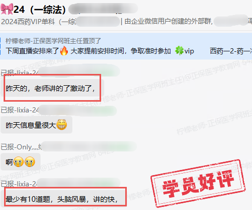 網(wǎng)校VIP簽約特訓(xùn)營學(xué)員考后說道:舒國暢老師昨天講的太激動了,信息量很大,至少考到了10道題。評價看下圖↓↓