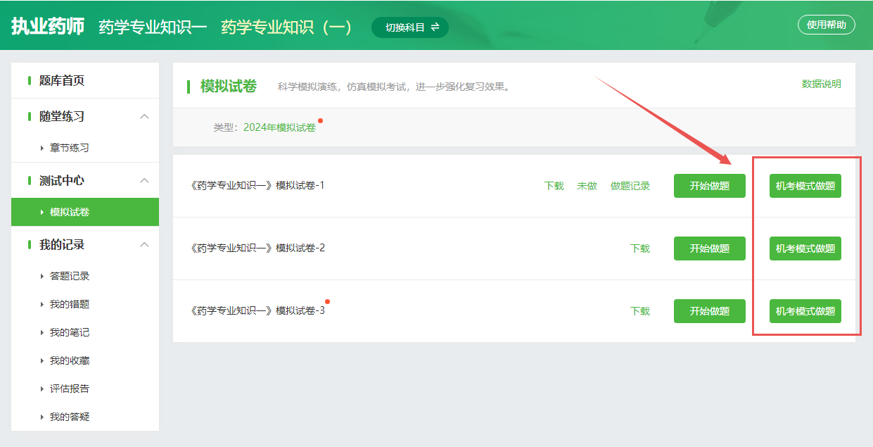 以上就是網(wǎng)校為付費學(xué)員以及未付費學(xué)員提供的不同的模擬入口,考生可根據(jù)自己的情況自行選擇進行全真模擬!最好可以多做幾套試卷,熟悉整個操作流程!預(yù)祝大家順利通過執(zhí)業(yè)藥師考試!
