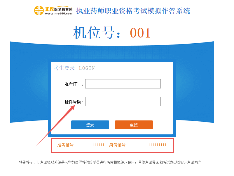 4、進入機考模擬界面,輸入下方準(zhǔn)考證號和證件號碼,即可開始模考了。